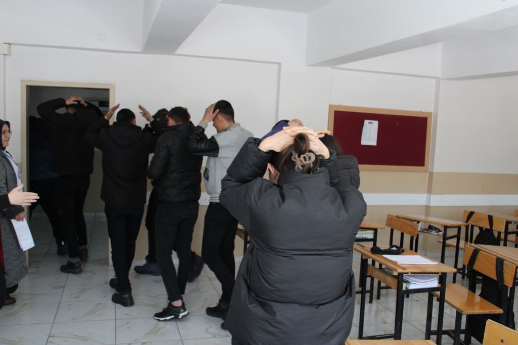 İlçe Milli Eğitim Müdürlüğümüz tarafından yürütülen Tercan Afet Farkındalık Eğitimleri Projesi kapsamında Erzincan İl Milli Eğitim Müdürlüğü AKUB ekibi okulumuz da afet farkındalık bilgilendirmesi ve tatbikatı gerçekleştirmiştir Bilgilendirme ve tatbikat sürecinin sağlıklı yürütülmesinde emeği olan öncelikle Akub ekibinin değerli üyelerine, İlçe milli eğitim müdürlüğümüze ve okulumuz Afete Hazırlık kulübü öğretmenimiz Başak YÜREK' e ve kıymetli öğretmenlerimize teşekkür ederiz.